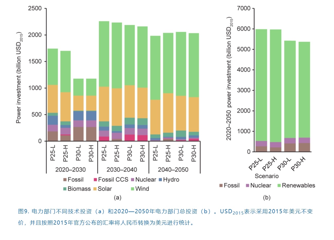 (2)中國需要在電力部門快速推廣可再生能源取代化石能源,同時由于可再生能源的高滲透率給電力系統(tǒng)的供需匹配帶來挑戰(zhàn),中國應(yīng)當(dāng)重視儲能設(shè)施的配套發(fā)展。