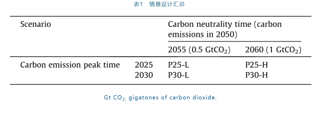 為了更加全面地評估能源轉(zhuǎn)型的影響,一些研究將研究邊界擴(kuò)大到整個能源系統(tǒng)。已有研究通過整合國家政策和技術(shù)發(fā)展預(yù)期,建立了自上而下的減排目標(biāo),并預(yù)測了不同政策下二氧化碳的排放量。目前也有一些研究評估了碳減排對空氣質(zhì)量、能源安全和水資源節(jié)約方面的協(xié)同效益。然而,這些研究都按照以往的2 ℃或1.5 ℃溫升控制目標(biāo)設(shè)計情景,并沒有以碳中和目標(biāo)為導(dǎo)向。