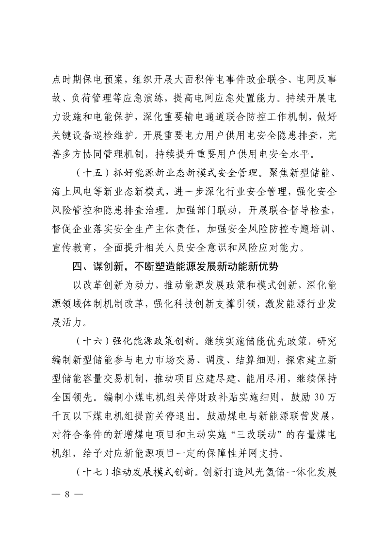 到2023年底,電力總裝機達到2億千瓦左右,其中,新能源和可再生能源發電裝機達到8000萬千瓦以上,占比達到40%以上。煤炭產量穩定在8600萬噸左右,天然氣供應量達到230億立方米左右,能源重大項目投資1100億元以上。