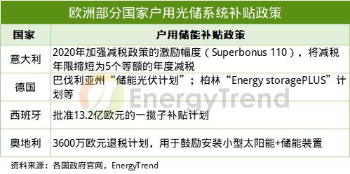 德國、意大利等歐洲國家均提供戶用儲能高額補貼。