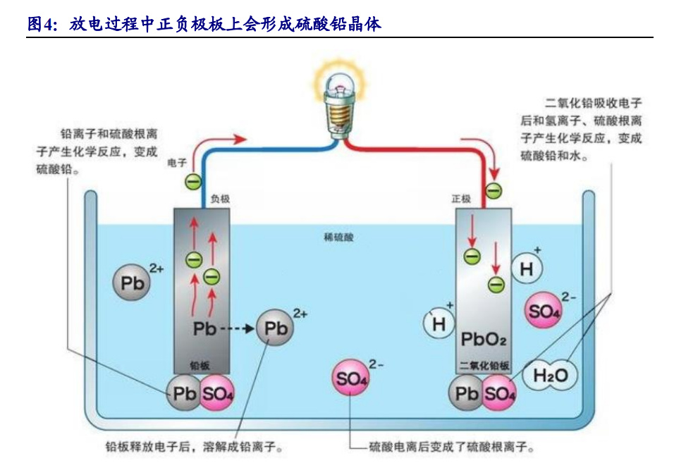 鉛酸電池包含正極板組、負(fù)極板組、隔板、電解液、容器等結(jié)構(gòu)組成。正極板 活性物質(zhì)為二氧化鉛,負(fù)極板主要活性物質(zhì)為鉛。放電過(guò)程中正負(fù)極板上會(huì)形成細(xì) 小松軟的硫酸鉛晶體,充電過(guò)程中硫酸鉛歧化為鉛與二氧化鉛。