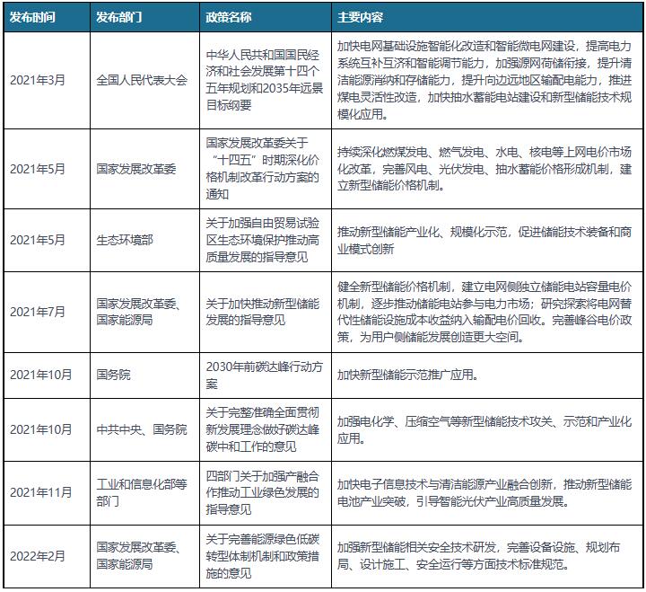 我國新型儲能行業相關政策