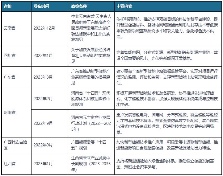 部分省市新型儲能行業相關政策