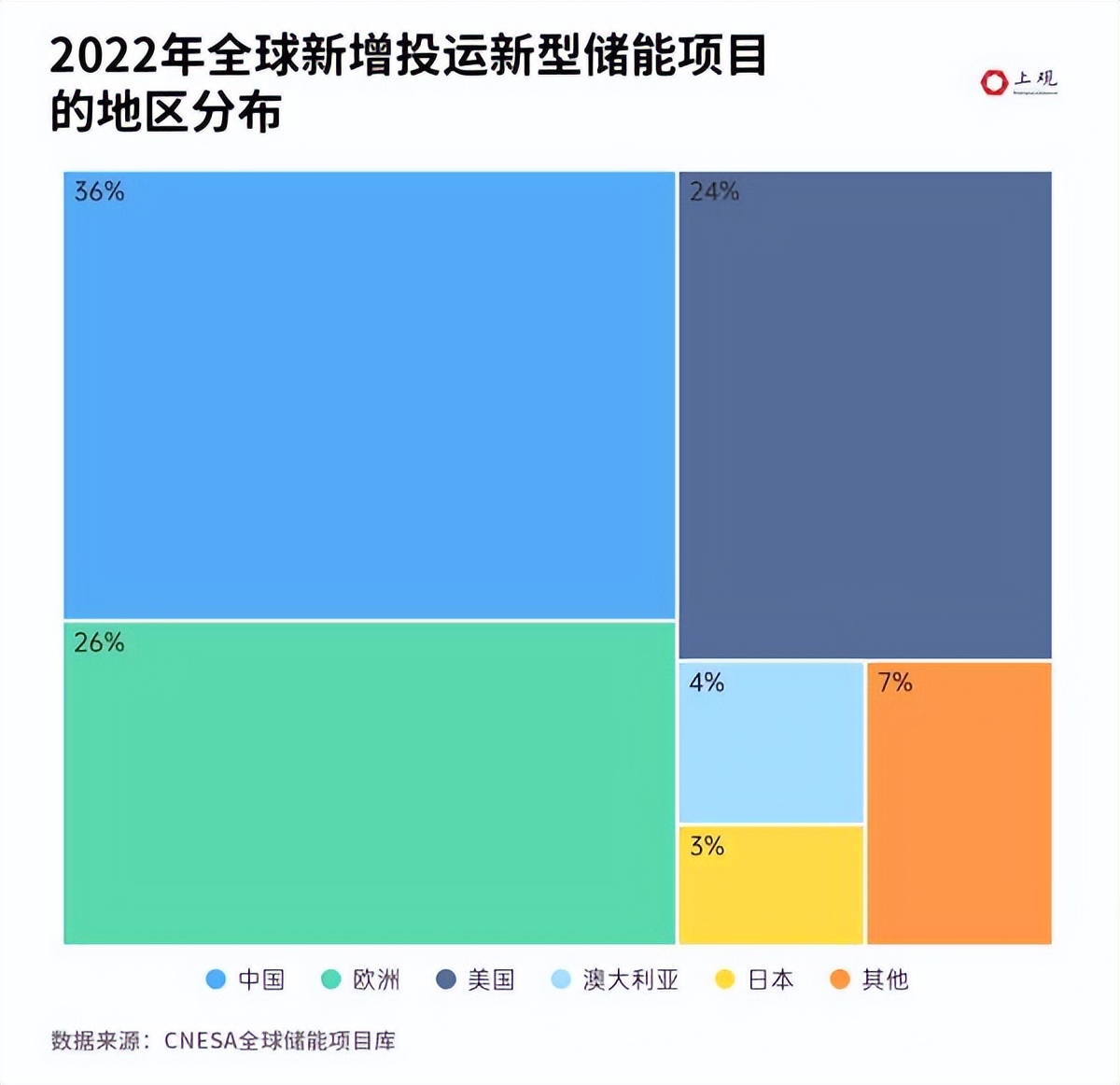 中國也是全球儲能市場發展的主力軍。據統計,在全球已投運電力儲能項目累計裝機規模中,2022年中國占四分之一,且依舊保持著較高的年增長率(38%)。2022年,以鋰電池儲能為代表的新型儲能在中國新增7.3吉瓦/15.9吉瓦時,占比全球第一(36%)。