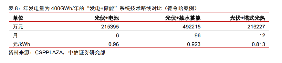 同時,考慮到國內電力系統轉型同時從“大基地+大電網”和“分散式電源+分布式智 能電網”雙線并行,兩種模式下產生了當下不同的技術路線、解決方案偏好。前者重點在 國內“十四五”期間約 450GW 風光大基地的基礎上,配置靈活性資源;扣除前兩批大基 地中較多配置在原有大基地及特高壓外輸通道周圍,剩余風光大基地結合目前已落地項目 來看,主靈活性資源一般會結合當地資源條件選擇靈活性火電或抽水蓄能電站,并補充一 定的鋰電儲能電站及光熱(熔鹽儲熱)電站。后者考慮分布式系統對靈活布點、項目規模 的需求差異,多以電化學儲能電站為主。預計在現行政策引導及項目儲備背景下,“十四 五”期間光熱電站(熔鹽儲能)新增裝機規模 4-5GW,對應 EPC 造價空間約 640-800 億 元,在“十四五”期間國內新增儲能裝機中占比約 3-4%。