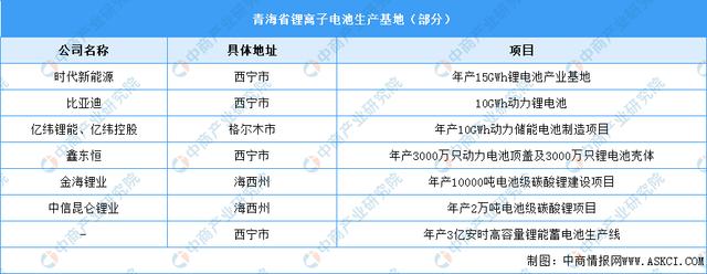 據不完全統計,青海省鋰離子儲能電池生產基地7個,其中,西寧市4個,海西州3個。