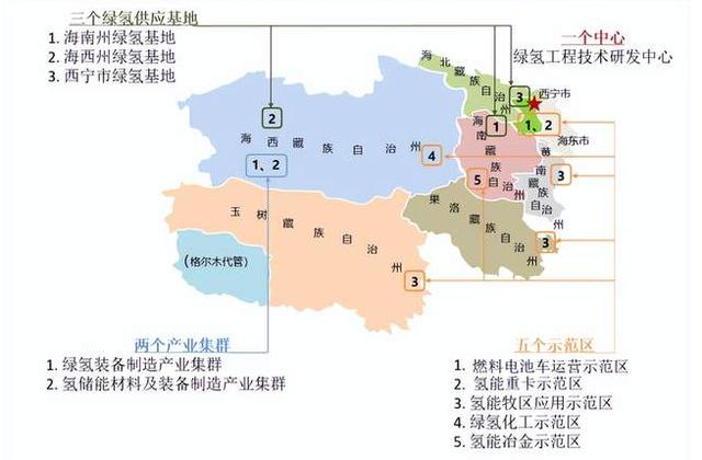 青海將逐步形成若干特色氫能產業集群,依托西寧經濟技術開發區、海西柴達木循環經濟試驗區、海東工業園區,重點發展電解水制氫設備、中型以上規模氫能儲能系統和氫能調峰電站,以及備用應急發電、分布式發電等技術及設備,逐步建成綠氫裝備制造產業集群。依托德令哈工業園,加快打造氫儲能材料、綠氫裝備制造產業集群。依托青海國家高新技術產業開發區,協同構建綠氫產業技術創新和高端裝備制造產業集群。