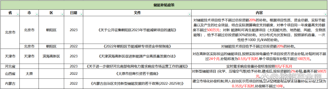 3、用戶側儲能補貼政策
