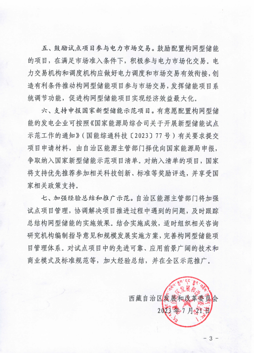 7月24日,西藏自治區發展和改革委員會印發關于積極推動西藏電力系統構網型儲能項目試點應用的通知(以下簡稱“通知”)。