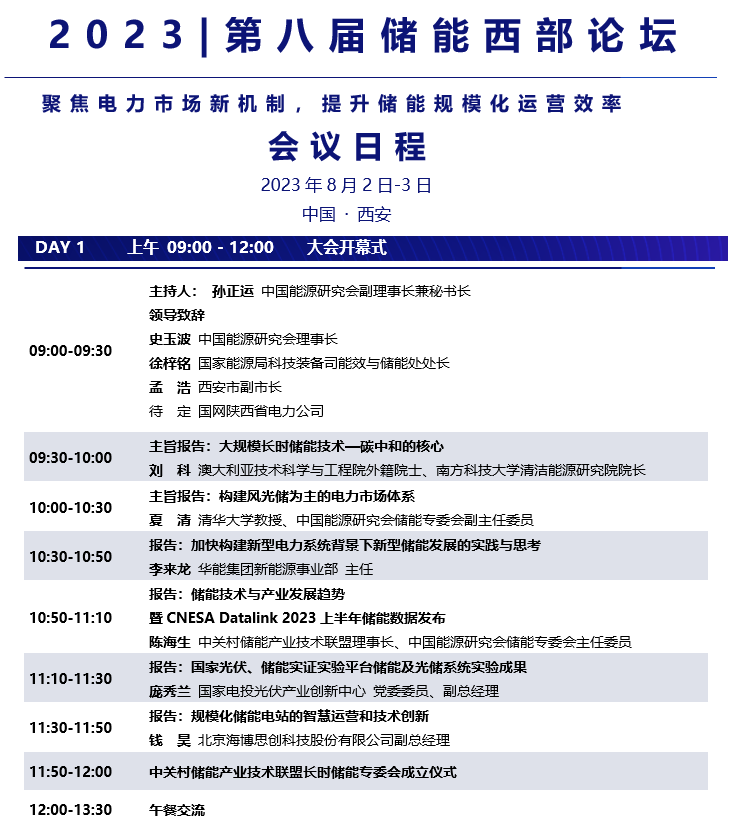 由中國能源研究會、中關村儲能產業技術聯盟聯合主辦的第八屆儲能西部論壇將于2023年8月1-3日在西安舉辦,同期將發布中國儲能產業半年度數據。