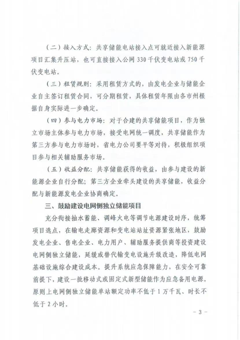 共享儲能獲得的收益,由參與建設的新能源企業自行分配;第三方企業牽頭建設的共享儲能,收益分配與新能源發電企業協商確定。