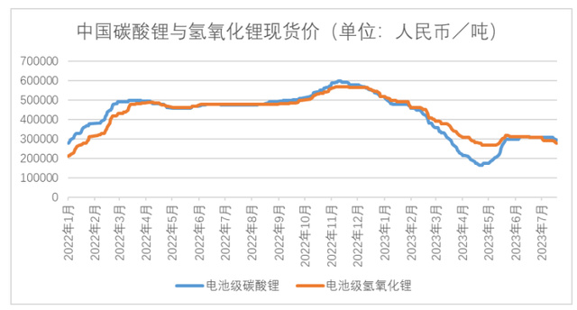 以澳洲鋰精礦廠商為例,今年上半年的鋰精礦價格大部分仍處于4000美元/噸以上區間,雖然二季度環比有20%左右的下調,但是整體相較去年同期,其實下滑幅度并不大,在10%以內。