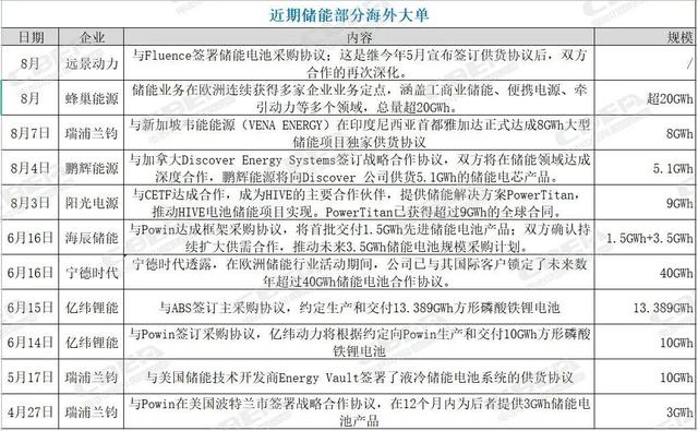 2023年8月,一共有5家儲能企業拿下海外訂單,創了年內的新高,其中蜂巢能源的儲能業務在歐洲連續獲得多家企業的業務定單,涵蓋工商業儲能、便攜電源等多個領域,總量超20GWh。