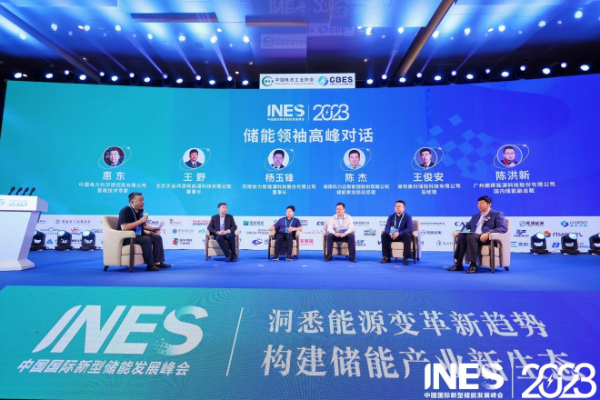 儲(chǔ)能領(lǐng)袖高峰對(duì)話環(huán)節(jié)由中國(guó)電力科學(xué)研究院有限公司首席技術(shù)專家、中國(guó)電池工業(yè)協(xié)會(huì)儲(chǔ)能分會(huì)專家委員會(huì)主任委員惠東主持,北京天啟鴻源新能源科技有限公司董事長(zhǎng)王野、廣州鵬輝能源科技股份有限公司國(guó)內(nèi)儲(chǔ)能副總裁陳洪新、河南創(chuàng)力新能源科技股份有限公司董事長(zhǎng)楊玉鋒、湖南科力遠(yuǎn)新能源股份有限公司儲(chǔ)能事業(yè)部總經(jīng)理陳杰、湖南贏科儲(chǔ)能科技有限公司總經(jīng)理王俊安,分別圍繞主流技術(shù)特征、應(yīng)用場(chǎng)景和商業(yè)模式等角度闡述獨(dú)到見(jiàn)解。