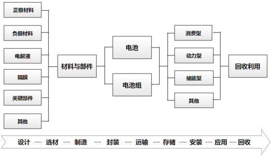 圖1 鋰離子電池產業鏈和生命周期