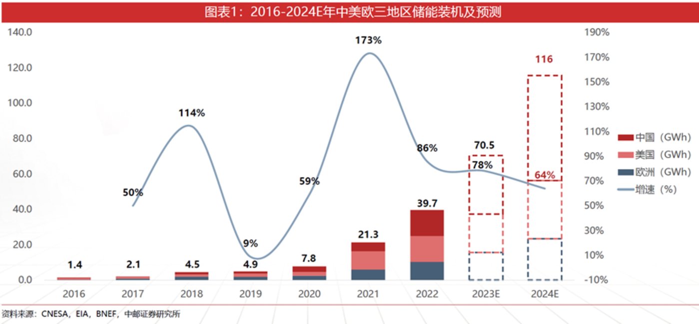 需求端,意外頻出。國(guó)內(nèi),強(qiáng)制配儲(chǔ)政策在落地過(guò)程中,有所放松;美國(guó),高利率降低了儲(chǔ)能的經(jīng)濟(jì)性,不少儲(chǔ)能項(xiàng)目大幅延遲。歐洲,戰(zhàn)爭(zhēng)影響減弱,電力價(jià)格回落,儲(chǔ)能需求降低;尤其在2022年,歐洲經(jīng)銷(xiāo)商們囤積了大量庫(kù)存,新增訂單意愿減弱。