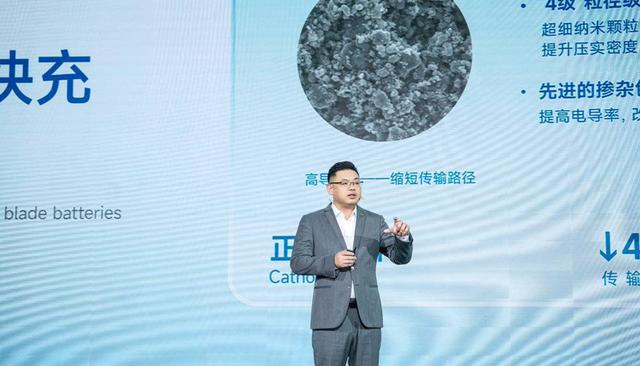 在短刀上實現快充,背后是電池工藝和設計上的又一次突破。例如電池的正極部分,采用的摻雜包覆技術,離子傳輸路徑降低了40%,電阻降低了10%;負極采用的表面技術和一次顆粒、二次顆粒的搭配技術,以及吸液性更好的添加劑,讓動力性能得到了提升;再包括電解液使用的新材料,以及類似于全極耳的直焊工藝,讓載流面積更大,最終讓短刀快充成為了可能。