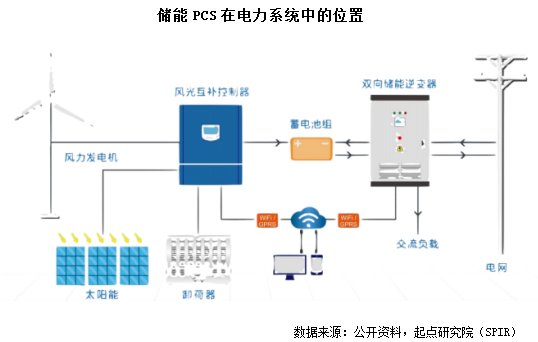 儲能逆變器(以下簡稱“儲能PCS”)是儲能系統產業鏈上的必要環節。電化學儲能系統主要由電池組、電池管理系統、能量管理系統、儲能逆變器和其他電氣設備構成,其中儲能PCS成本占比約11.4%。儲能PCS可以控制儲能電池組的充電和放電過程,進行交直流的變換,是儲能系統中的必要環節。