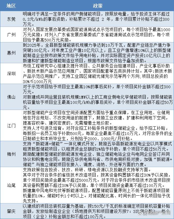 其實,不止是東莞,廣州、惠州、深圳、佛山、江門、梅州、汕尾、肇慶在推動儲能發展上都下足了功夫。