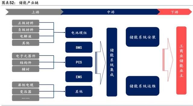 儲能上游為電池產業、電氣設備產業,下游主要為電力系統參與企業。