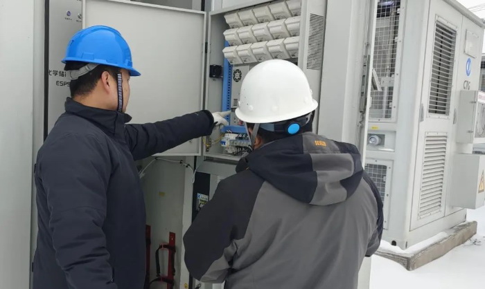 3月7日19點,正值全國“兩會”用電高峰期,該電站集裝箱式電池艙滿負荷運行。工作人員認真檢查設備運行狀態,記錄設備運行溫度。“我們安排專人值班值守,加強巡視檢查,提前預判設備健康狀態,保障安全穩定運行。”電站負責人焦松表示。