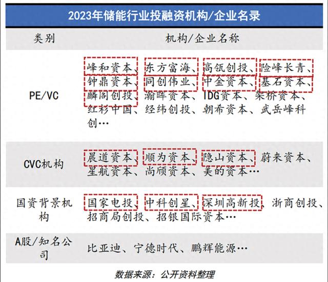 機(jī)構(gòu)入局者眾多,資金結(jié)構(gòu)豐富。過去一年,儲能行業(yè)的投資方不乏高瓴創(chuàng)投、同創(chuàng)偉業(yè)、中金資本(601995.SH)、IDG資本、春華資本等知名機(jī)構(gòu),也有蔚來資本、尚頎資本等產(chǎn)業(yè)基金,以及寧德時(shí)代、比亞迪(002594.SZ)等上市公司(具體見圖1)。