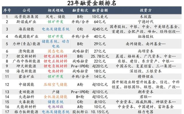 2023年,部分企業(yè)獲取高額融資,遠(yuǎn)景能源、海辰儲能融資領(lǐng)銜。