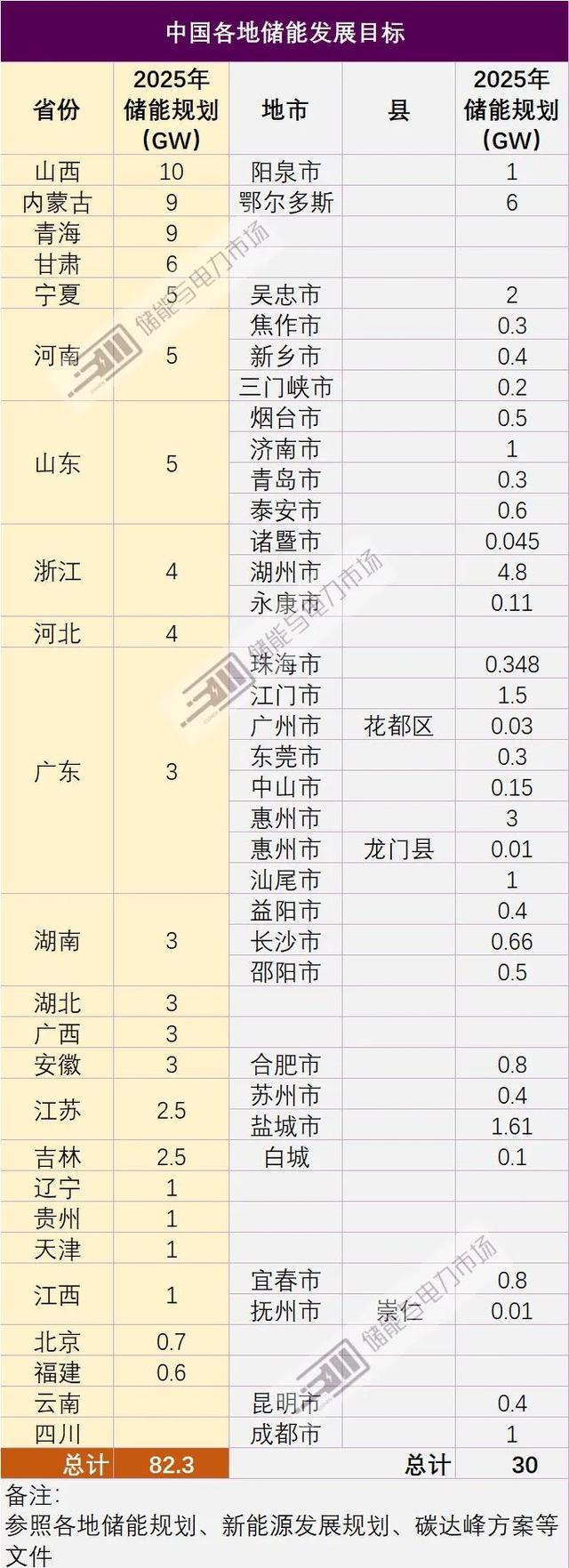 各地規劃儲能超80GW,山西、內蒙古、青海規劃規模最大