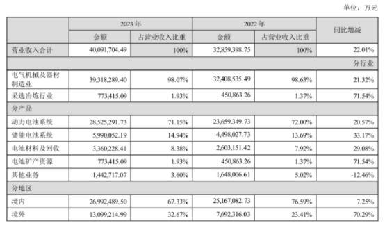 其次,通過觀察各鋰電企業2023年年度報告和業績,多家企業業績去年增長明顯放緩,而儲能業務增長迅猛,有望成為第二增長點。寧德時代年報顯示,2023年寧德時代在儲能電池系統業務同比增長33.17%,是除動力電池系統產品以外的營收最高的產品類目。此外,欣旺達年報數據也顯示,儲能系統類業務實現了144%的增長。事實上,頭部企業去年的年報或多或少都有受到儲能業務增長的影響。