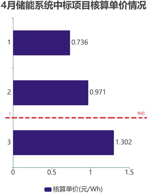※ 4月儲能系統中標核算單價情況 來源:星球儲能所