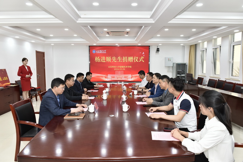 5月9日,青島北方木材市場管理有限公司董事長、山東科技大學創新創業導師楊進順一行來校捐贈50萬元,儲能學院黨委書記秦曉鐘代表學院接受捐贈并向楊進順頒發捐贈證書。