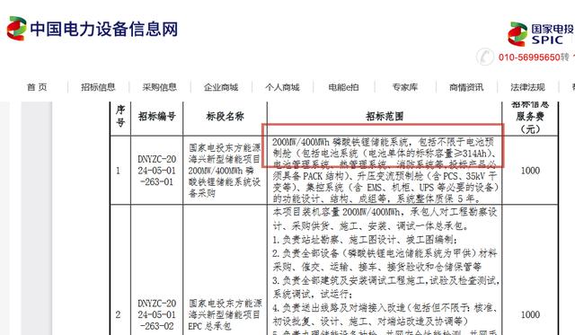 隨著各大電池廠商的314Ah電芯產能逐步釋放,市場需求也隨之而來。2024年1月17日,中國電氣裝備披露2024年一級規模集中采購計劃安排,將于6月將發布儲能用磷酸鐵鋰電池芯采購需求,采購內容為280/314Ah磷酸鐵鋰電芯;3月15日,贏科儲能發布1.5GWh磷酸鐵鋰電芯年度集中采購項目,其中280Ah、314Ah方形鋁殼磷酸鐵鋰電芯在采購需求中明確提出。