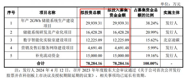 其中29939.31萬元用于年產2GWh儲能系統生產建設項目,16428.28萬元用于儲能系統研發及產業化項目,12225.09萬元用于數字智能化實驗室建設項目,4691.48萬元用于營銷及售后服務網絡建設項目,15000萬元用于補充流動資金。