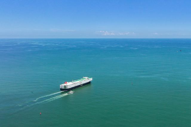 比亞迪自主滾裝船“開拓者1號”滿載出海。朱洪波 陶清清/攝