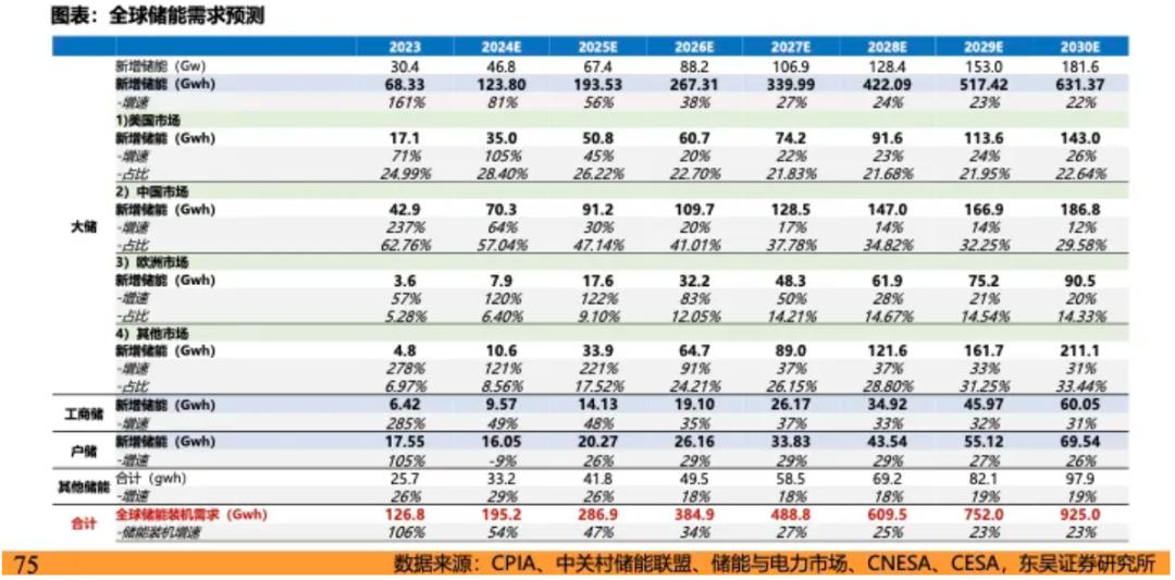 今年以來,寧德時代和比亞迪的儲能集成系統業務都有超級大單,陽光電源去年也有一個大單,都來自中東,一個19GWh,一個15GWh,一個7.8Gwh。集成商一哥特斯拉2024年的總裝機量是31GWh,比亞迪和寧德的單子已經接近特斯拉去年的50%了。
