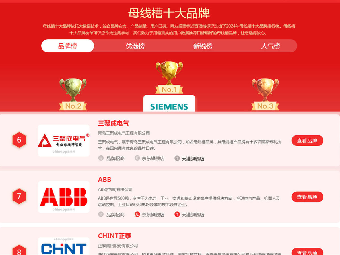 ...等等,一共十個優秀的母線槽品牌企業被評為母線槽十大品牌。
