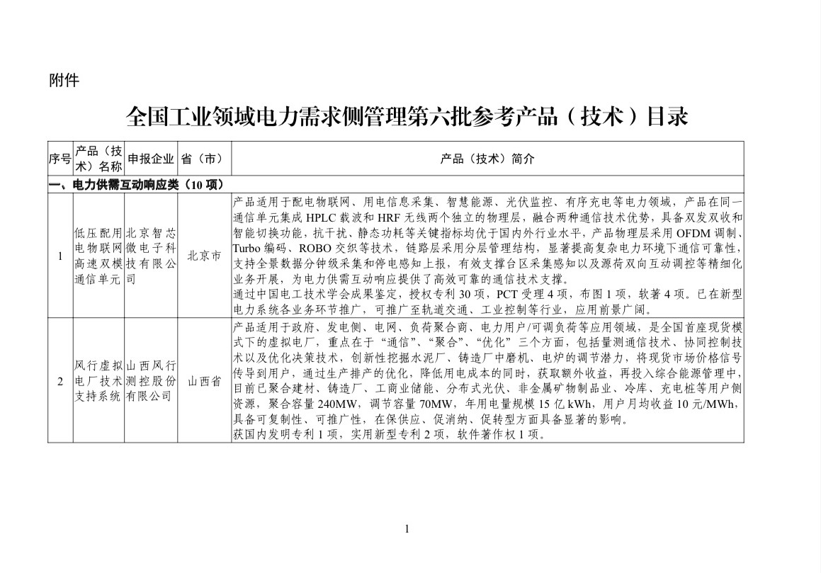 附件:全國工業領域電力需求側管理第六批參考產品(技術)目錄