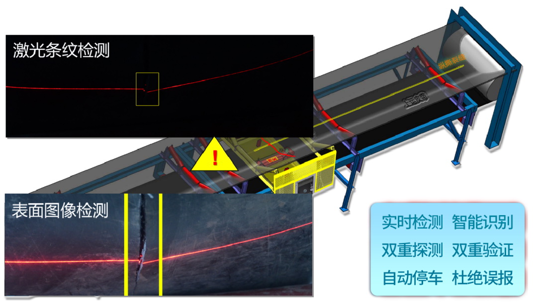 斗輪機操作人員識別驗證采用深度學習算法,支持離線比對,人臉比對時間<0.2s/人,人臉比對準確率≥99%;輸送帶縱向撕裂檢測裝置使用激光束掃描皮帶表面,相機采集圖像信息,獨立鑒定,相互驗證,當兩種手段100%確認了縱向撕裂發生,系統才進行報警。