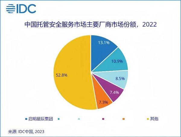 近日,IDC發(fā)布《中國托管安全服務(駐場、遠程、云托管)市場份額,2022》報告。報告顯示,啟明星辰集團以13.1%的市場份額穩(wěn)居托管安全服務整體市場第一,以17.7%的市場份額穩(wěn)居駐場托管安全服務子市場第一。