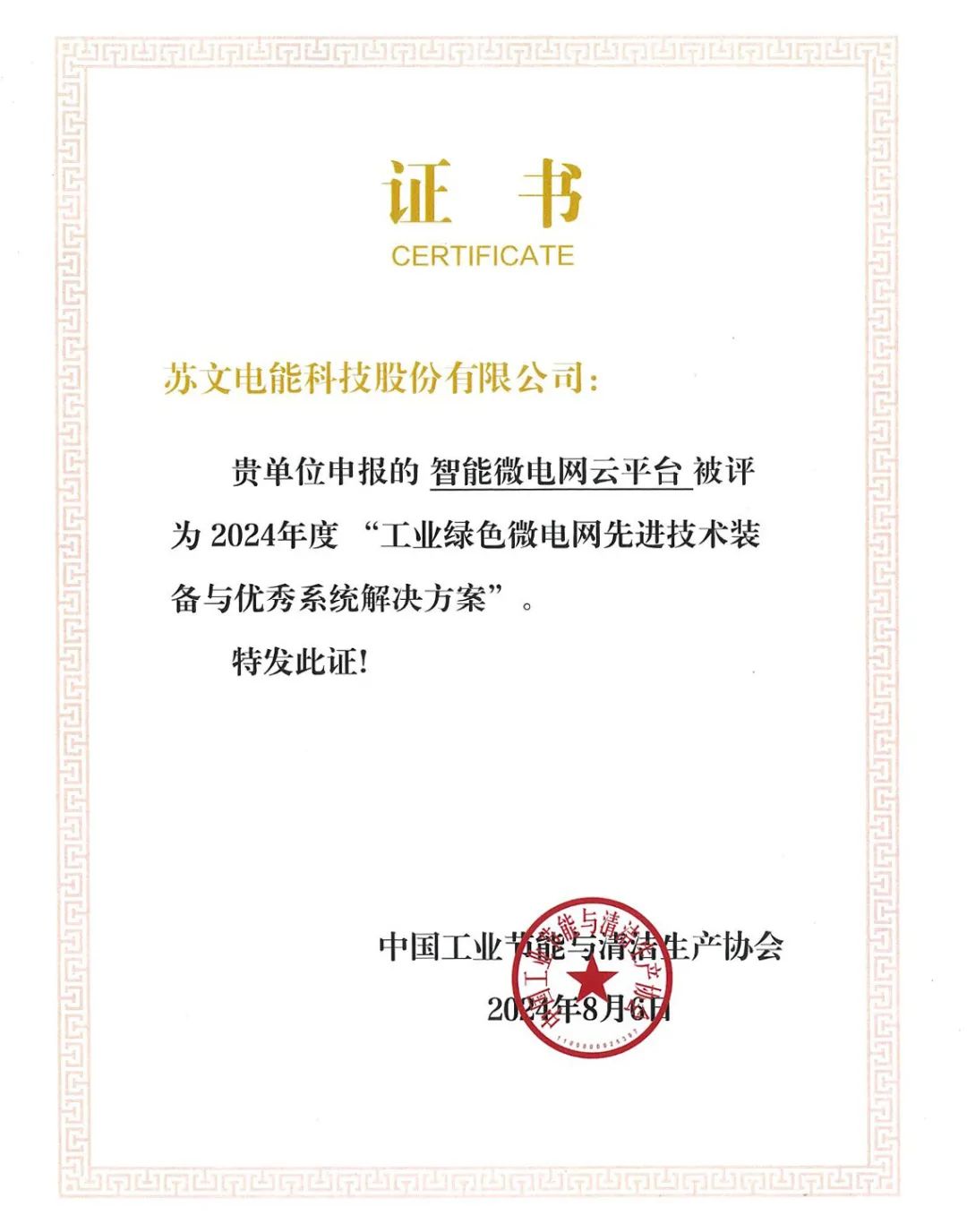 8月17日,由中國工業(yè)節(jié)能與清潔生產(chǎn)協(xié)會主辦的“2024工業(yè)綜合能效大會”順利召開,蘇文電能(300982)電能俠智能微電網(wǎng)云平臺被授予“工業(yè)綠色微電網(wǎng)先進(jìn)技術(shù)裝備與優(yōu)秀系統(tǒng)解決方案”大獎,這一榮譽(yù)標(biāo)志著,蘇文電能在工業(yè)節(jié)能環(huán)保領(lǐng)域所作出的突出貢獻(xiàn)。