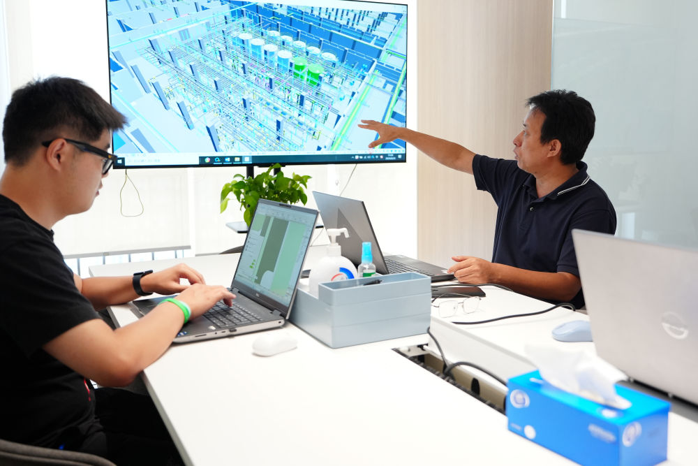 2024年8月26日,中國電子院工作人員利用數字孿生模型討論某半導體項目純水系統方案