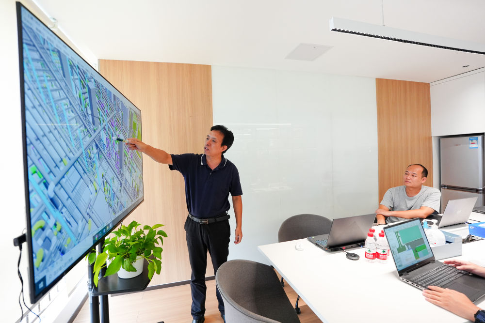 2024年8月26日,中國電子院工作人員在討論某先進半導體項目物流仿真方案