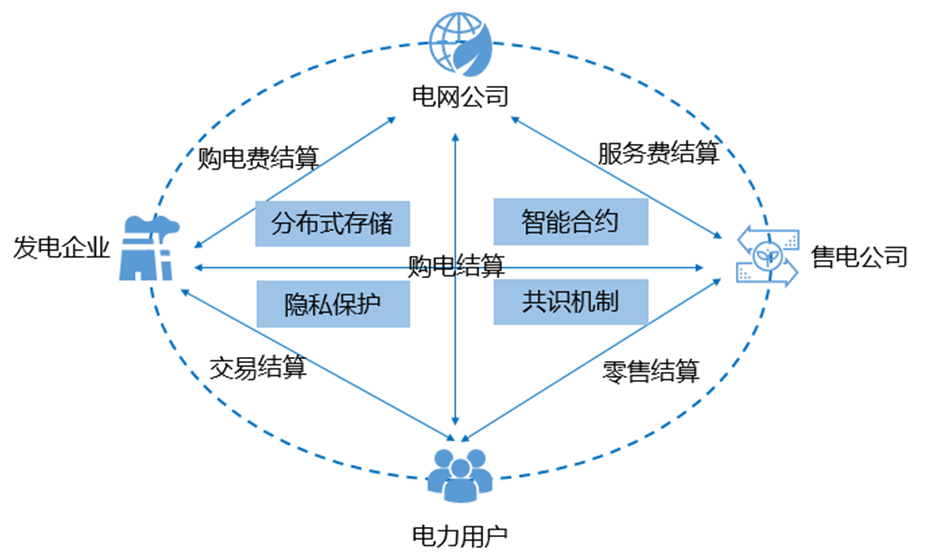 市場化的電費結算是能源交易的核心業務,我國的電費結算技術開始于1960年,隨后被廣泛應用于各行各業。目前,我國普遍采取“預購電”方式結算電費,但這種模式對分布式新能源接入等多種新場景,存在能量流、信息流不統一,交易流程長、響應不及時、合同履約難掌控、信用體系難建立等問題。