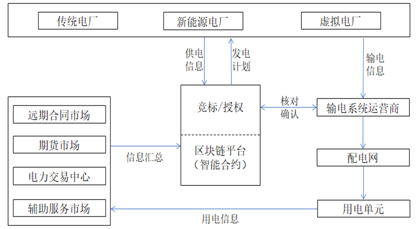 隨著可再生能源大規模發展,具有參與者眾多、單筆交易量小等特點的分布式電力交易模式逐步成為一種發展趨勢,但分布式電力交易存在用戶信息不透明、發輸用三方利益不對等、交易手續煩瑣影響用戶參與意愿等難題。