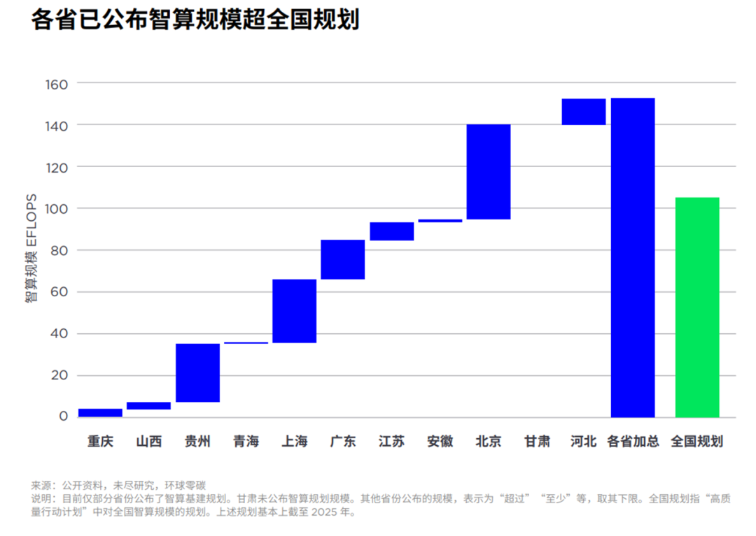 中國智能算力規模正在爆發式增長。在國家政策、市場競爭的推動下,中國各地規劃的智算規模總量,已經超過了全國的計劃目標;智算規模實際部署速度,也要快于計劃文件的目標。