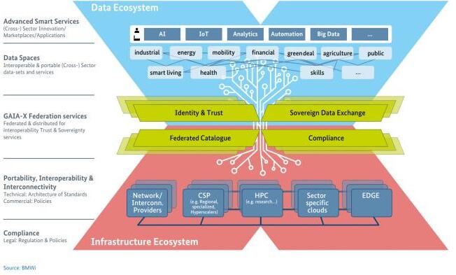 目前,德國(guó)和法國(guó)已成為眼下歐盟地區(qū)云計(jì)算項(xiàng)目的領(lǐng)導(dǎo)者,由兩國(guó)牽頭的Gaia-X 項(xiàng)目,便致力于建立一個(gè)真正屬于歐洲的數(shù)據(jù)基礎(chǔ)設(shè)施,即歐盟的“母云端”。這個(gè)項(xiàng)目的目標(biāo)是實(shí)現(xiàn)數(shù)據(jù)的互操作性,從而促進(jìn)數(shù)據(jù)的自由流動(dòng)和共享。該項(xiàng)目對(duì)于歐洲的云計(jì)算發(fā)展有著重要的影響,將進(jìn)一步促進(jìn)了歐洲各國(guó)之間的云計(jì)算合作,推動(dòng)了這個(gè)地區(qū)的云計(jì)算技術(shù)的發(fā)展。