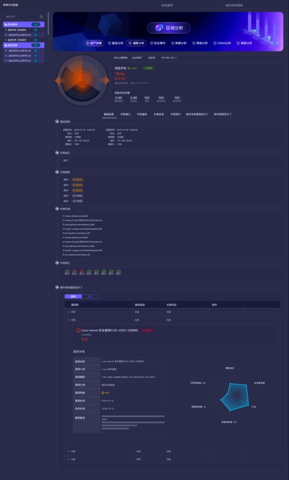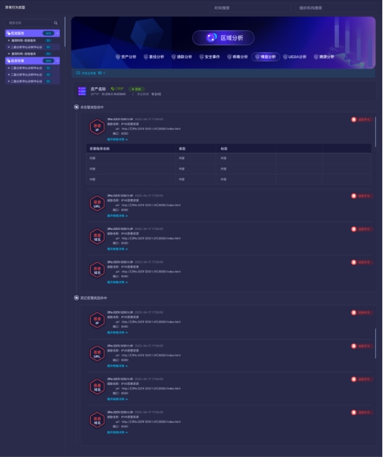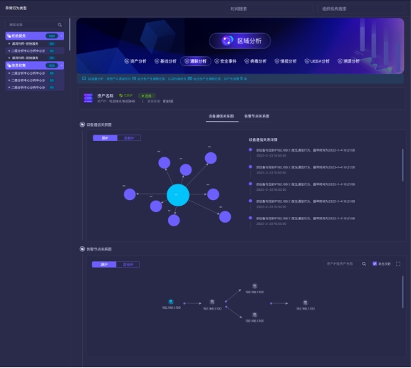長揚態(tài)感網(wǎng)絡空間安全分析功能以資產(chǎn)為核心,從區(qū)域、聯(lián)通性、病毒、情報、漏洞、基線、溯源、UEBA行為等多個方面進行全方位、立體化分析。