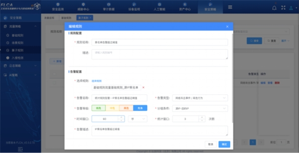 工控內(nèi)網(wǎng)安全監(jiān)視:記錄功能碼、數(shù)據(jù)地址、寄存器地址、對象名、屬性、數(shù)據(jù)類型、類型標識、傳輸原因、應用程序數(shù)據(jù)單元、數(shù)據(jù)塊等工控協(xié)議的主要參數(shù)和特征,通過機器學習技術分析并學習通信正常模式,及時發(fā)現(xiàn)異常流量和攻擊行為。