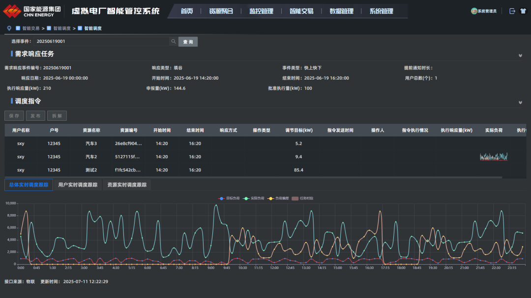 系統可按照資源類型、交易單元、節點、分路等多維度聚合可調負荷、分布式電源、分布式儲能等資源;系統具備矩陣式和全景式資源監控能力,實時監控電源及負荷資源的運行狀態和數據;系統支持需求響應、電能量交易等多種電力交易模式; 系統具備調度指令分解模型,以多策略實現調度指令分解至資源單元;系統基于物聯網平臺架構,建立多種資源物模型,實現調控指令安全、穩定執行。