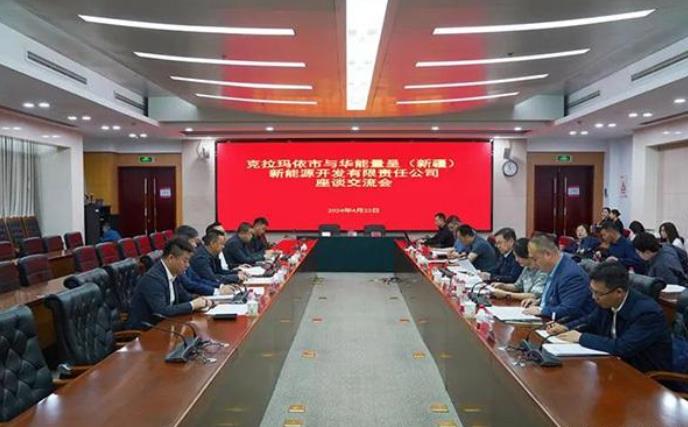 4月22日,克拉瑪依市與華能量呈(新疆)新能源開發有限責任公司舉行發展合作座談交流會。會后,克拉瑪依區、華能量呈(新疆)新能源開發有限責任公司簽訂了《2.5GW光伏及風力發電廠及人工智能綠色算力中心項目投資框架協議》。